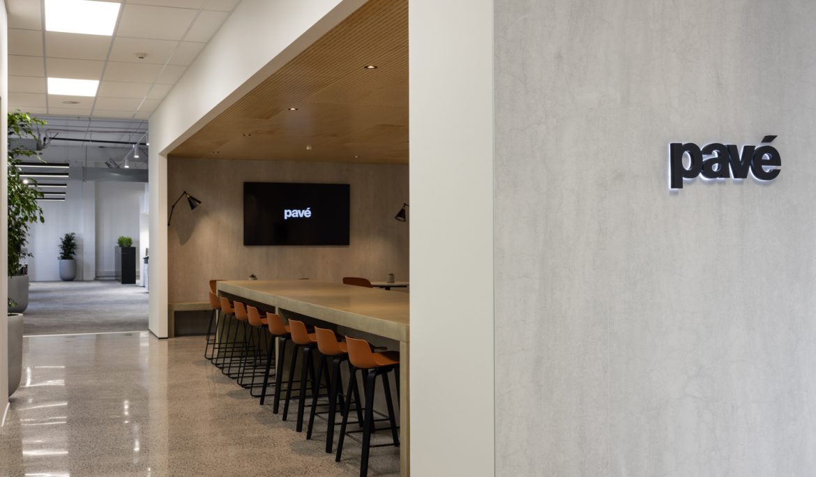 Tasked with aligning the new office with Pavé’s recent rebrand, we managed the entire journey—from design to project management to final delivery—